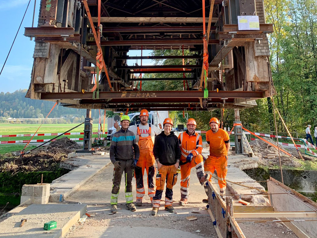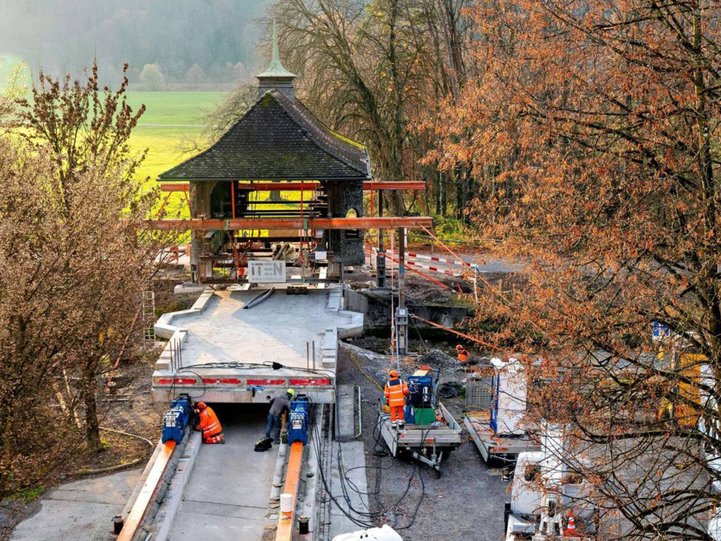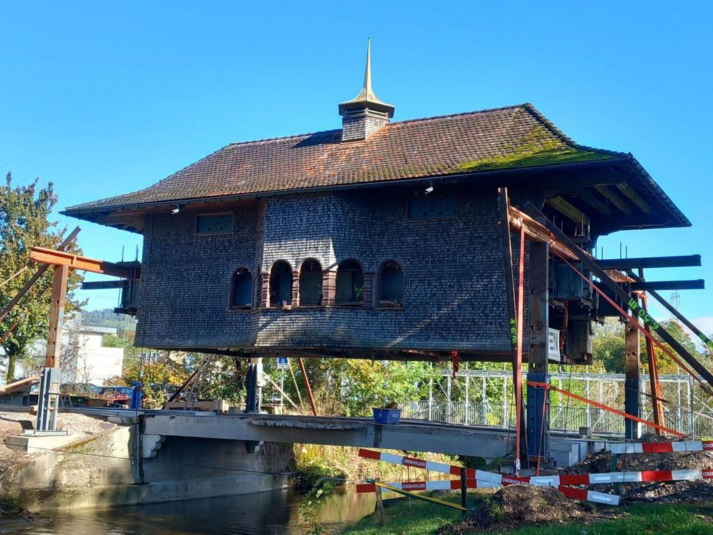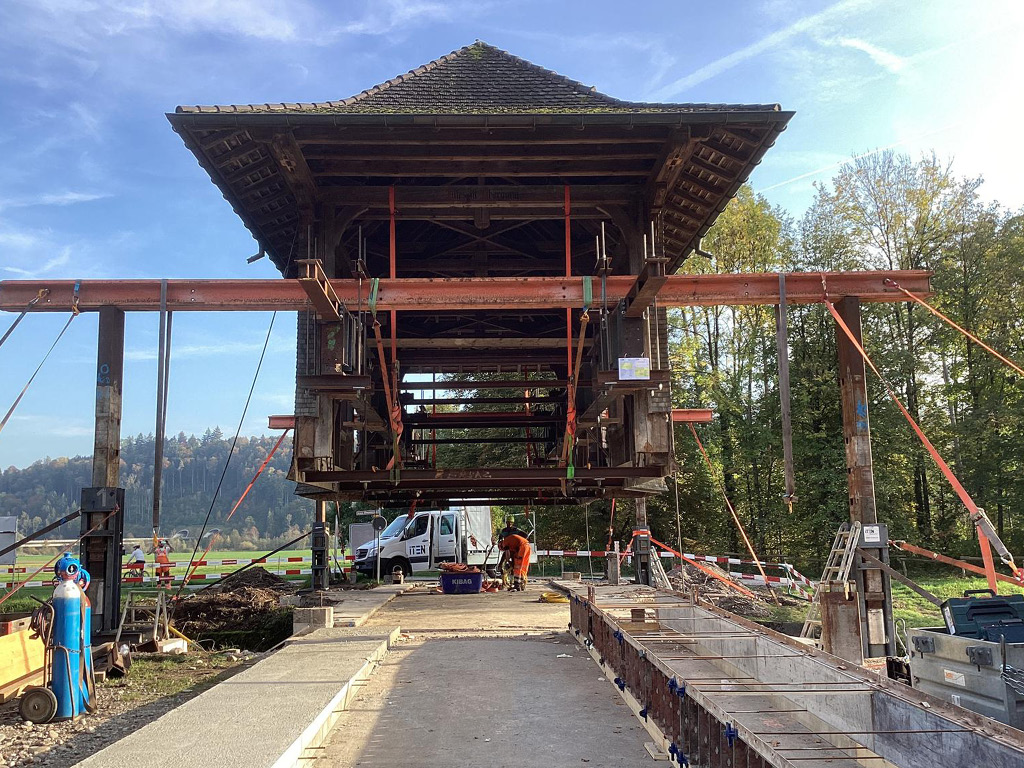 Schützenswerter Überbau wurde während Bauarbeiten angehoben. Bei Arbeiten am fliessenden Wasser ist immer besondere Vorsicht geboten.