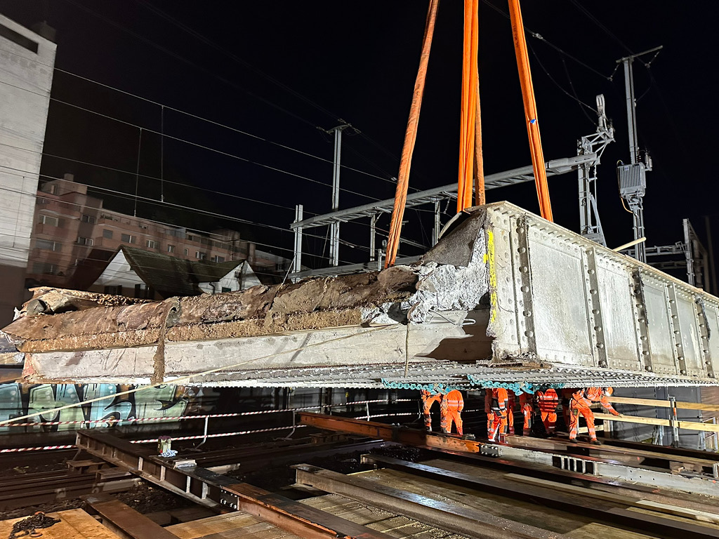 Hierfür wurden auf der Plattform Verschubbahnen mit diversen Verschubschlitten erstellt sowie der Ausschub der bestehenden Brücke und der Einschub der neuen Brücke in zwei Teilen im Rahmen eines Wochenendeinsatzes realisiert.