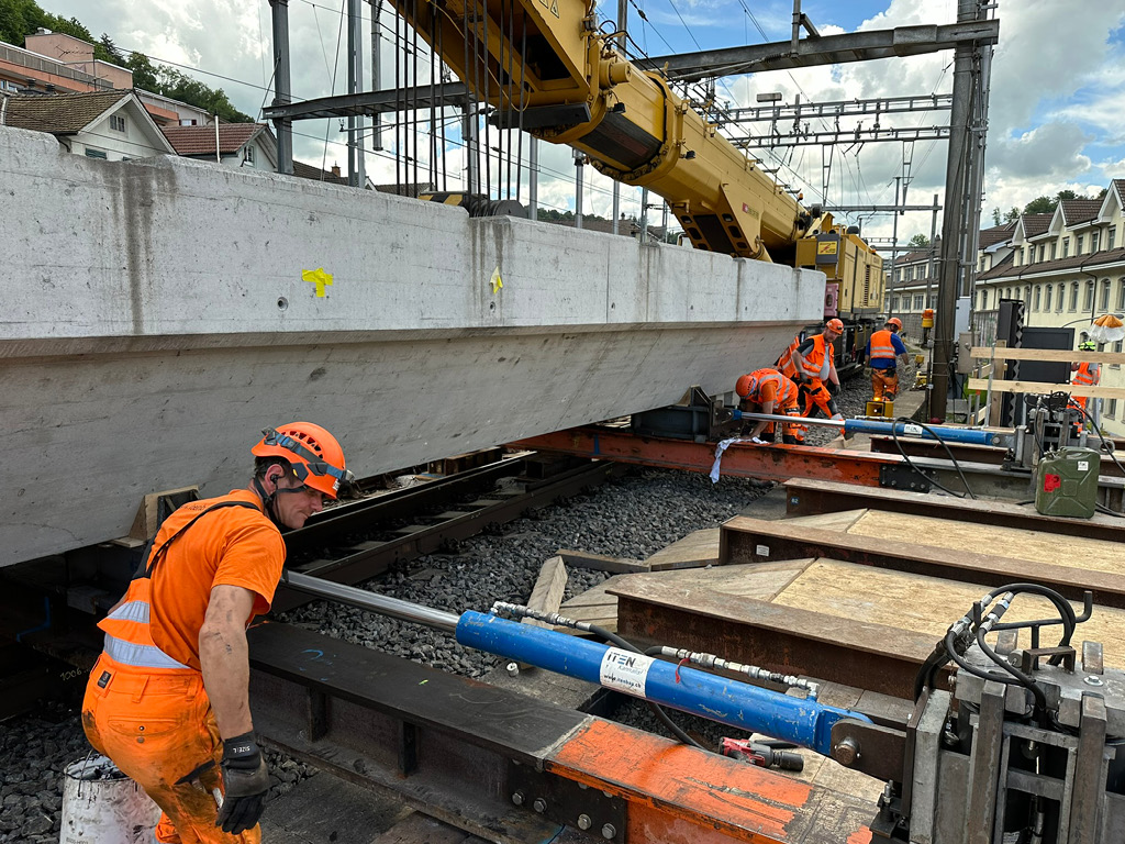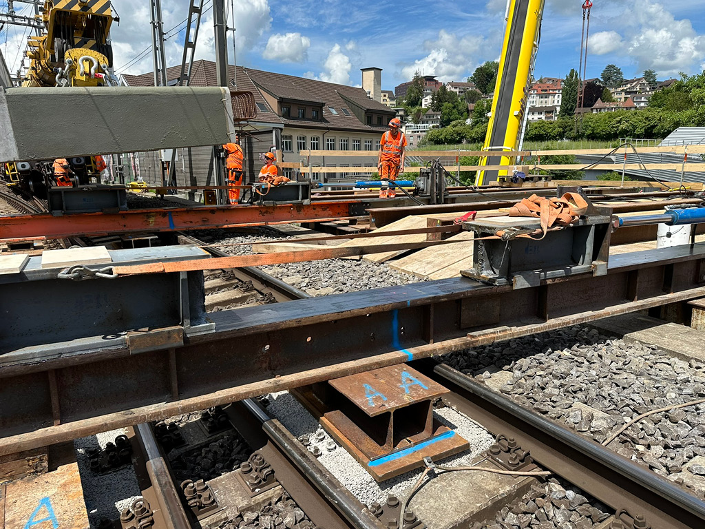 Im Jahr 2024 wurden in Luzern Verschubarbeiten an der SBB-Gütschbrücke ausgeführt, wobei alte und neue Brückenelemente vom Gleisbereich auf eine Plattform verschoben wurden. Hierfür wurden Verschubbahnen erstellt sowie der Aus- und Einschub der Brücke in zwei Teilen im Wochenendeinsatz realisiert. Besonders anspruchsvoll war der komplexe Ablauf mit Anheben, Einschieben und Transport bei laufendem Bahnbetrieb im 10-Minuten-Takt.